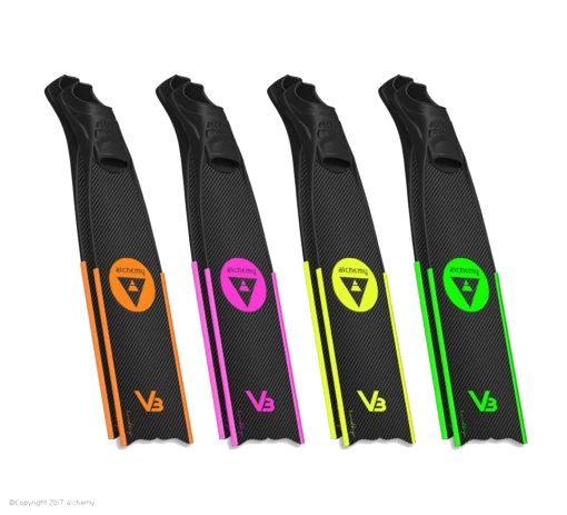 Alchemy V3-30 blades offer a new pat. pending design called hardtip. Built in reverse order, we managed to get the blade’s tip harder. This all new feature makes the most out of your blade’s efficiency as it corrects the total bending profile ensuring zero dead spots during immersion from deep dives. While not taking part in the blade’s total stiffness level, comes into action when fins start oscillating continuously during diver’s vertical movement, ensuring continuous power transition without dead spots.