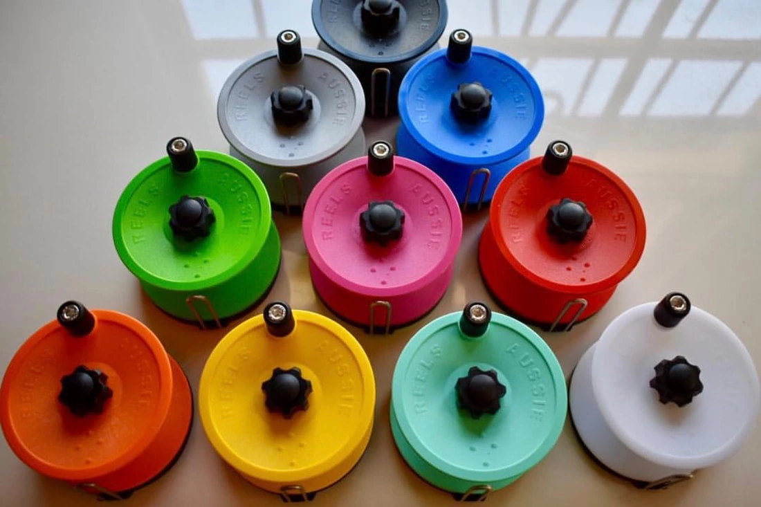 The “Barracuda”This is where it all started where Barry and Hans thought there has to be a way to design a reel where you do not need to drill into the barrel of your rail gun. With over 70 years diving experience between them they designed the original reel and called it the “Barracuda Reel.” These were originally made for themselves and then people started asking if they could have one and then the production started rolling. Over the last 8 years the “Barracuda Reel” has had various improvements and we are now at our 4th generation “Barracuda Reel” with the biggest innovation since the clamp design coming only very recently where we have made it possible so the handle of your gun does not need to be removed to attach the reel. Making it easy to put your reel on your gun and if needed it can also be removed easily.The Barracuda comes in several colors.