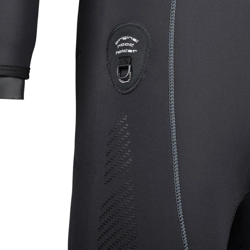 Large G-Lock plus back zip (one-piece with collar) with metal slider and embossed Water Dam System cover for a better seal (Beuchat patent)Β