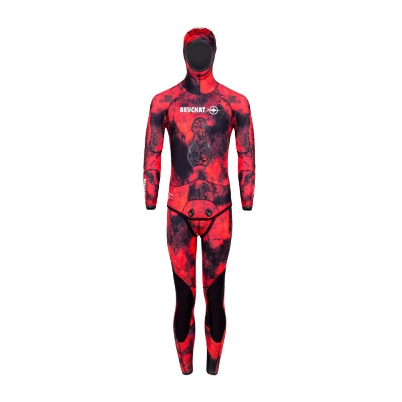Red camouflage from the fusion of Trigocamo Wide and a black frameto further break up the spearfisherβs silhouette.