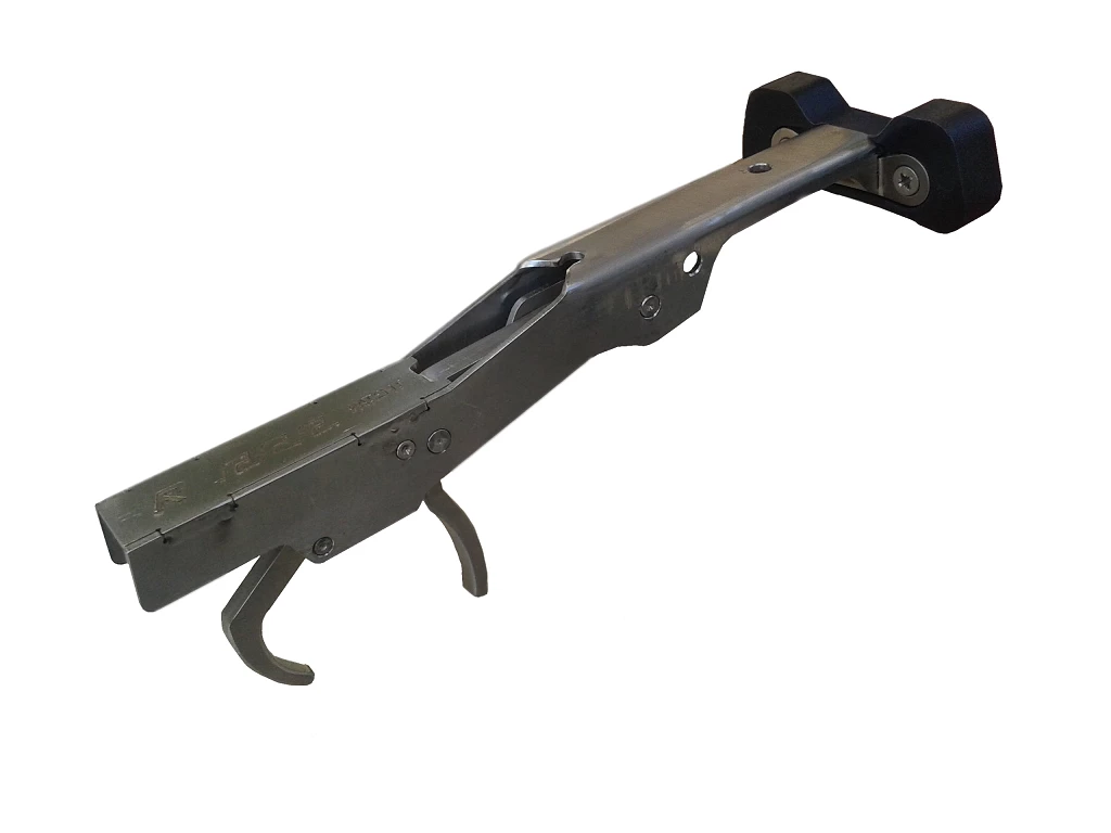 The best inverted trigger mechanism ever designed for thermoplastic handles type ROB ALLEN Vecta 1, catalyzing all utilitarian and technical problems with the replacement mechanism . The anatomical chest rest makes it easy and feasible to load multi banded power setups even on shafts with extra rear shark fins- pins or notches. The mechanismβs installation is easy without modifications by using the existing holding pin of the first mechanism. It self-centers 6 cm further back in relation to the classic front mechanism and can accept shafts with extra shark fins- notches. It has an excellent line of site. The trigger, due to its unique design has an unparalleled sensitivity factor due the short route &, best angle of rotation thus the trigger resistance is unaffected under huge loads. As with the other mechanisms of the company, the line release with pushrod design, operates independently of the trigger and the spear preventing the stiff- trigger phenomenon as well as the deformation of the shaft and the deterioration of the shot. All components are thoroughly and evenly sculptured without spikes . The innovative operating system with pushers of the mechanism is patent protected. Any change or modification with respect to the shape, size, dimensions, materials of construction and assembly including a variety of application fields and if it does not include new inventive steps and is not conducive to the technique already known will be considered an aim and aspirations of the present invention.The ideal suggestion to upgrade spearguns with the ROB ALLEN handles Vecta 1.