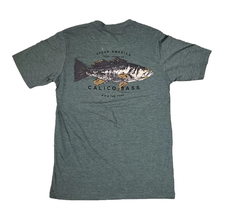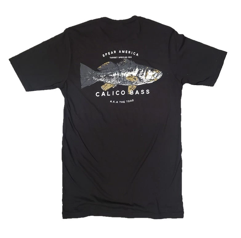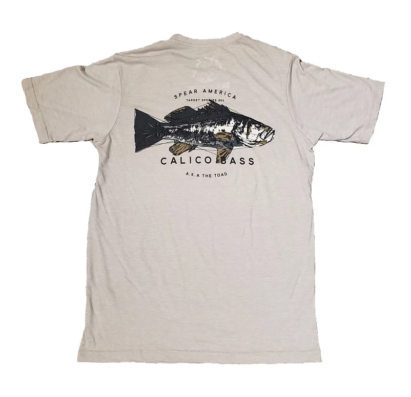 Spear America Calico Bass T-Shirt.Β We only use Next Level blanks for our shirts to ensure comfort and great fit.