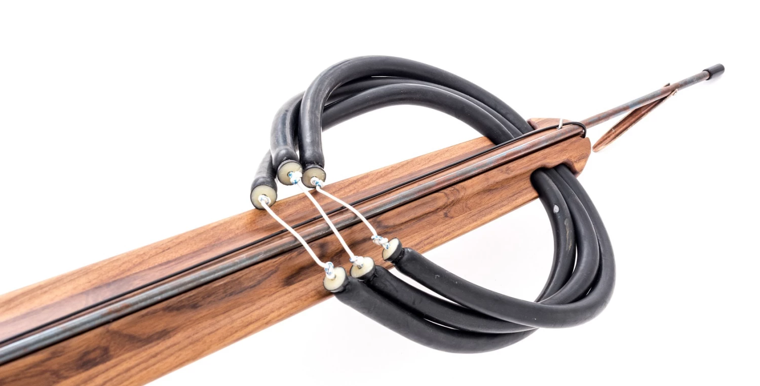 The speargun comes fully equipped with a 7.00mm sharkfin spear and three 9/16 (14mm) bands.